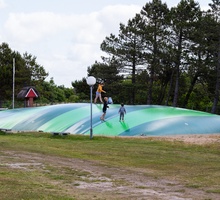 Auf dem Platz warten zwei liebevoll gestaltete Spielplätze auf unsere kleinen Gäste. Einer davon ist ausgestattet mit einem großen Hüpfkissen, Sandkasten, Klettergerüst, Schaukeln und Rutsche – perfekt für stundenlangen Spielspaß. Für die größeren Kinder gibt es einen separaten Bereich mit einem extra großen Hüpfkissen.